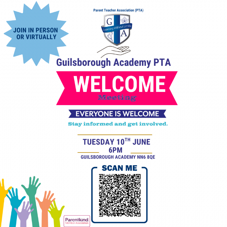 - Full members of the PTA attend 3 meetings a year at Guilsborough Academy and provide refreshments at events including Parents' Evenings, Open Evenings, Academy Productions and Music Concerts