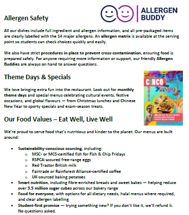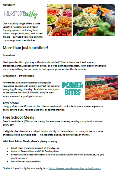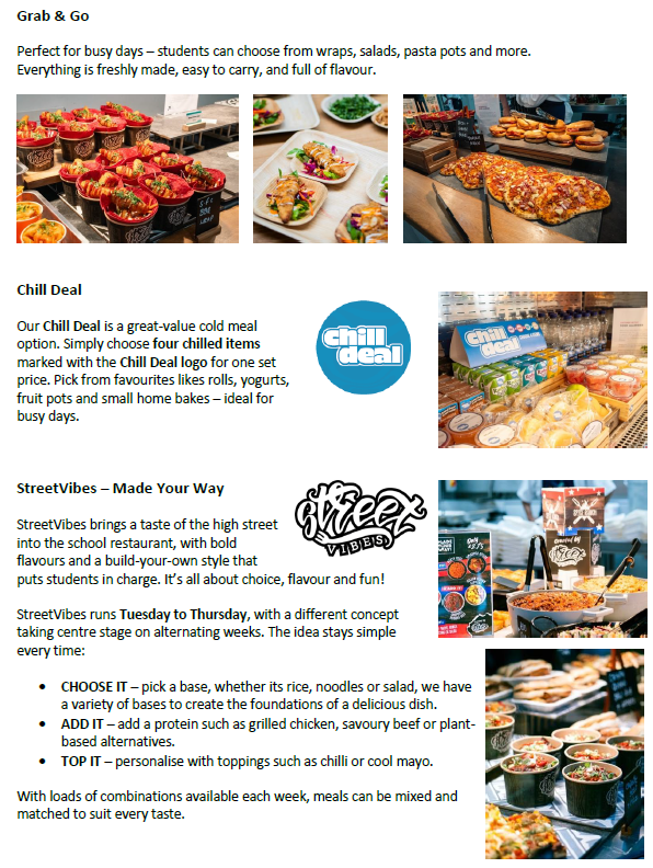 We have 3 canteens; one in A block whuch is not currently used for students, and two in B Block for Years 7 - 11. We also have our Sixth Form Café which is for Sixth Form students and staff only.