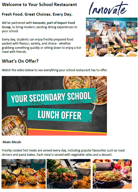 Our school canteens offer a wide range of food options for students at break and lunchtime.